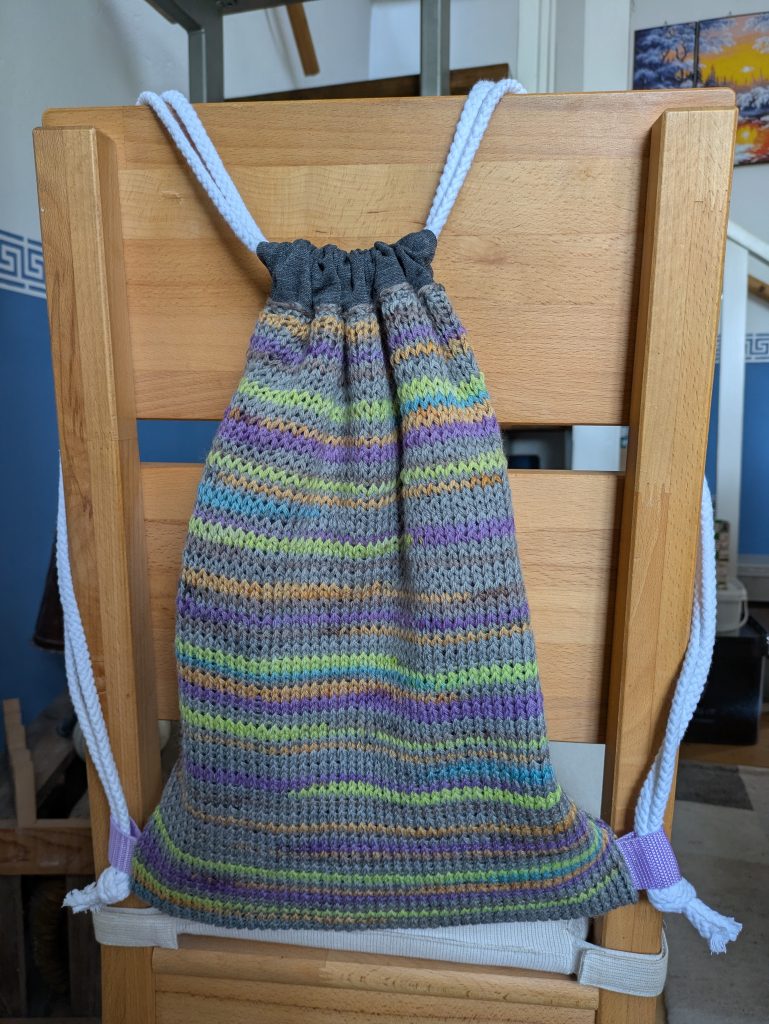 Die Rucksäcke sind ca. 40cm hoch und 30 cm breit, das variiert je nach Wolle ein wenig. Alle Rucksäcke haben ein Innenfutter um trotz Strick auch gut nutzbar zu sein und kosten 25€ zzgl. Versandkosten. Jeder Rucksack ist sowohl handgestrickt, als auch handgenäht. Dadurch entstehen ausschließlich Unikate, denn selbst bei gleicher Wolle ist das Ergebnis immer ein wenig unterschiedlich.